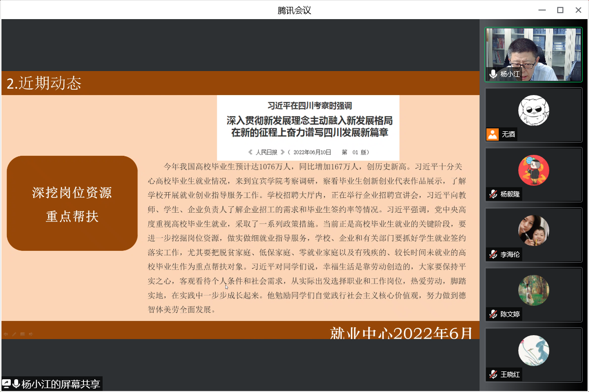 会议邀请了学校学生处副处长、就业指导中心主任杨小江老师做了学生就业工作专题讲座,他从开云体育官网