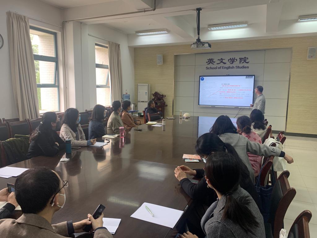 会上,宋健楠老师和李婷老师分享了参加“第七届高等学校英语教师教学基本功大赛”的参赛经验。两位老师从比赛历程、如何备赛、如何在教学设计中突出亮点、以及如何进行录课实操等方面毫无保留地分享了各自的备赛参赛经验。苏锑平以西北工业大学张莹教授的优秀教学案例为例,带领全系教师一起学习了如何设计教学案例,以及如何将课程思政融入教学。苏老师鼓励大家积极参与各项教学竞赛,强调老师们要多学习多交流,尽量将思政元素自然地融入教学内容中。