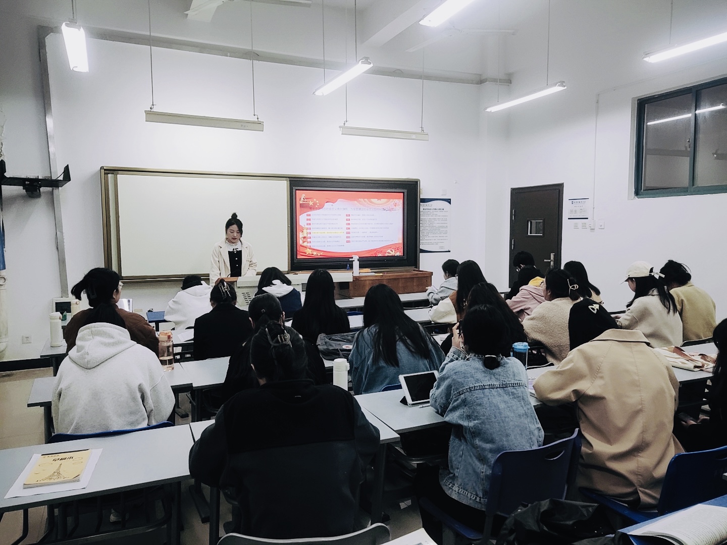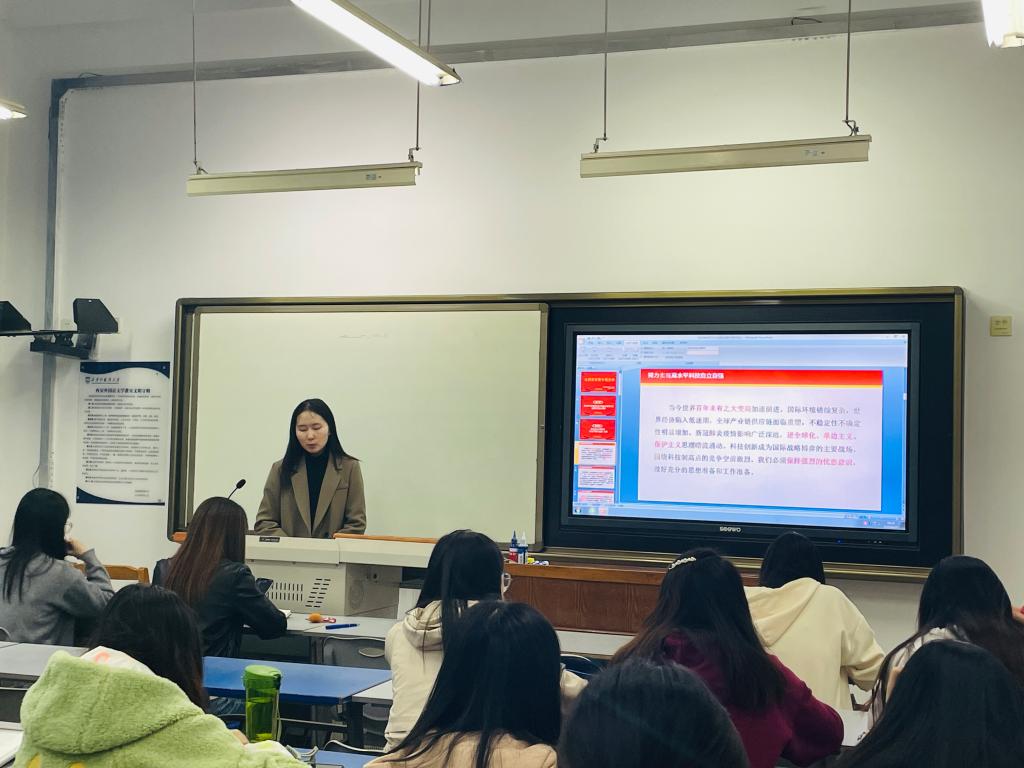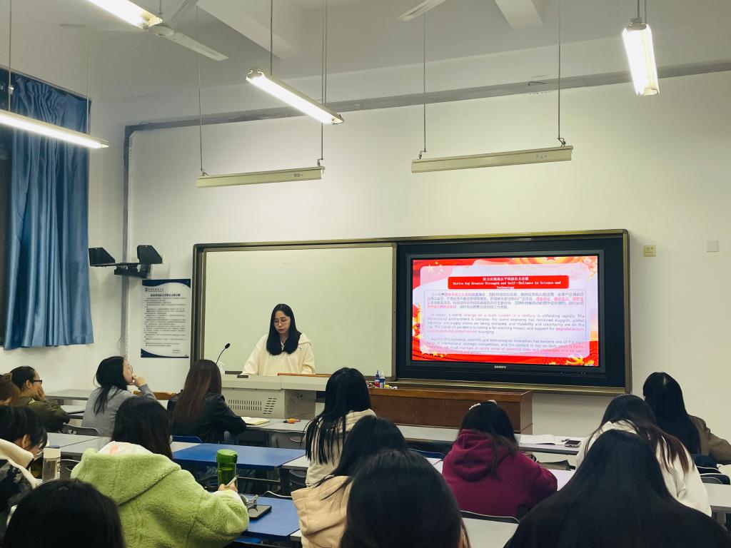 研究生第一党支部组织委员丁泓月、研究生第二党支部宣传委员李玉妹以“实施科教兴国战路,强化现代化建设人才支撑为题,讲授双语党课