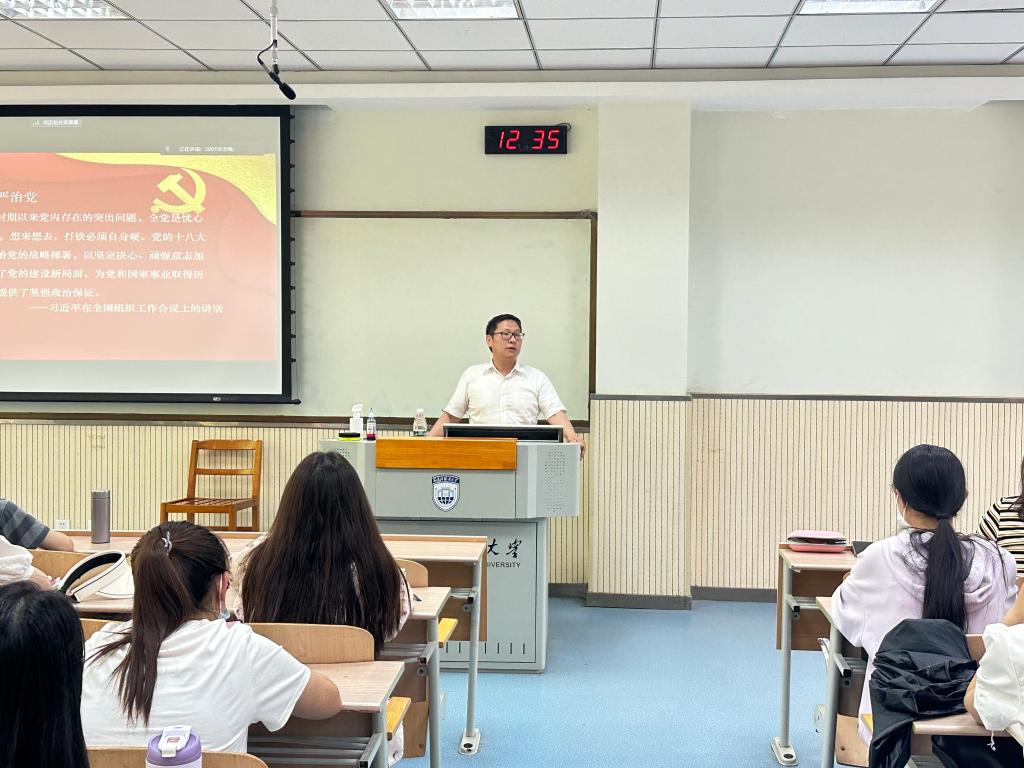 第一讲《全面从严治党》(Exercising full and rigorous self-governance of the Party),由开云体育 党委书记单升军主讲,他以习近平总书记关于党的建设的重要思想为统领,从“为什么要全面从严治党”“什么是全面从严治党”“新时代全面从严治党有哪些要求和经验”“新征程上如何一刻不停地推进全面从严治党”等四个方面进行解读。他谈到,党中央作出全面从严治党的战略部署,以坚定决心、顽强意志加以推进,团结带领全党开创了党的建设新局面,为党和国家事业取得历史性成就提供了坚强政治保证。他提到,全面从严治党核心是加强党的领导,基础在全面,管全党、治全党,面向全体党员和党组织;关键在严,真管真严、敢管敢严、长管长严;要害在治,各级党组织都要肩负主体责任,各级纪委要担负起监督责任。他表示,新征程上就是要落实新时代党的建设总要求,健全全面从严治党体系,全面推进党的自我净化、自我完善、自我革新、自我提高,使我们党坚守初心使命,始终成为中国特色社会主义事业的坚强领导核心。最后,他寄语广大学生党员“青年当有志,立志在四方;祖国需要处,皆是我故乡”。