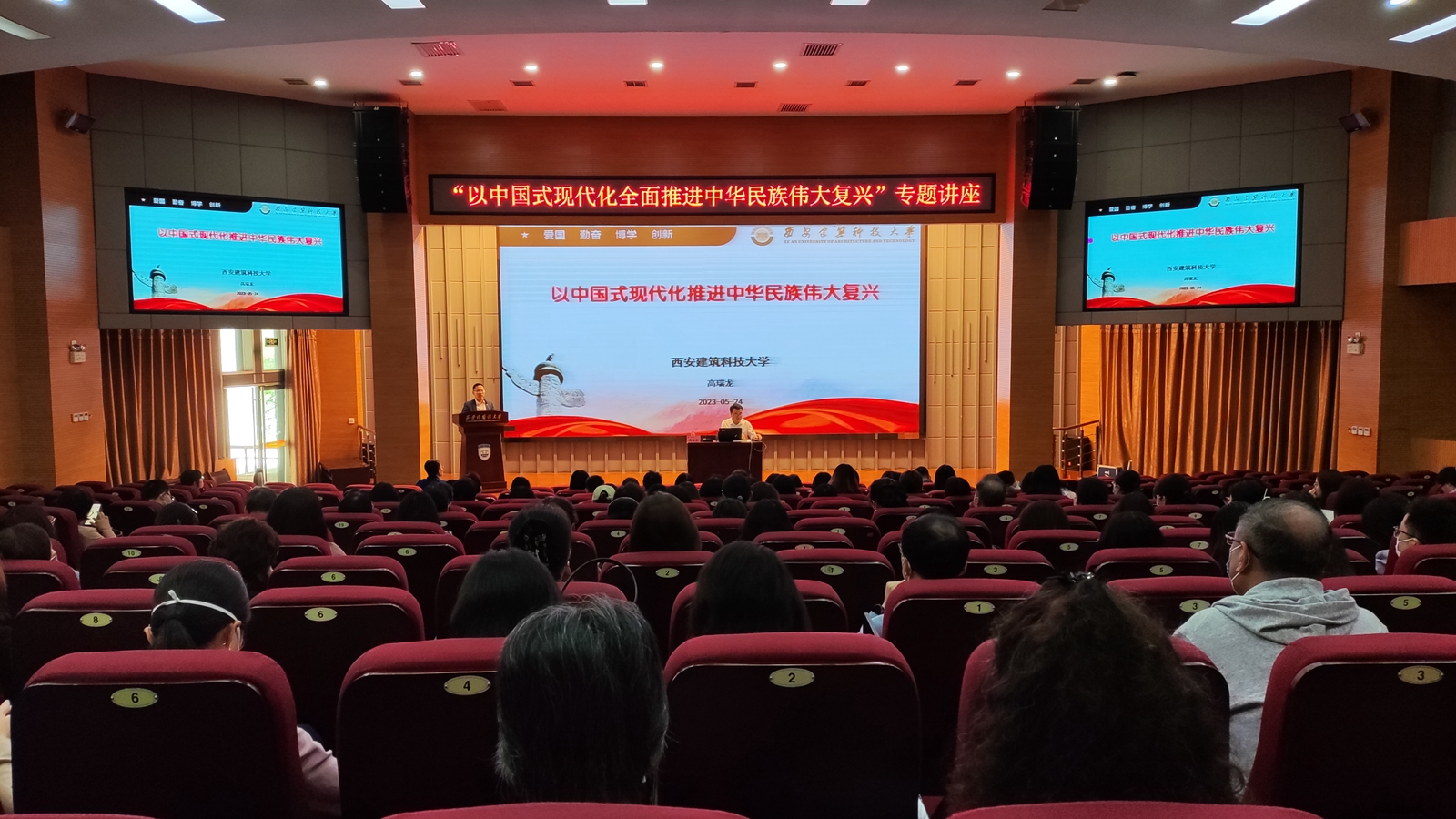 在长安校区教学楼JA111报告厅举办“以中国式现代化全面推进中华民族伟大复兴”专题讲座,讲座由西安建筑科技大学党委宣传部常务副部长高瑞龙主讲,开云体育