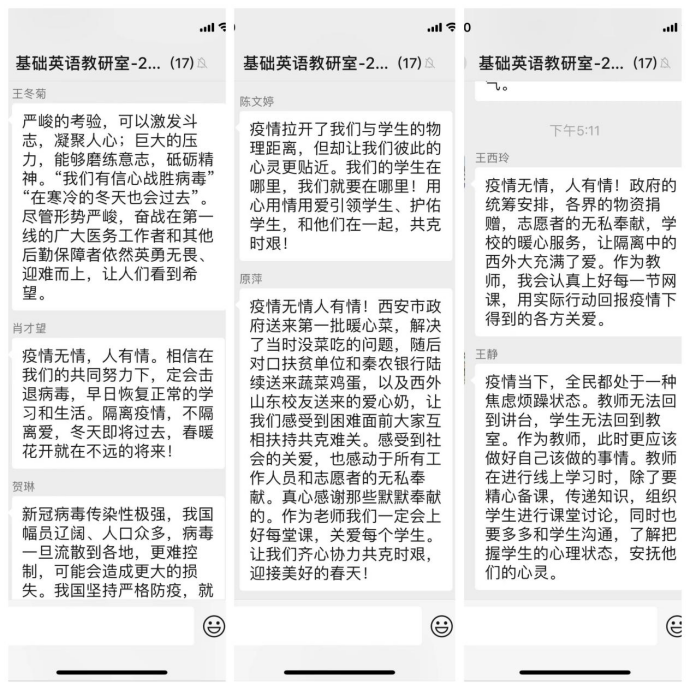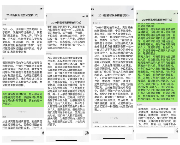 基础英语、视听说教研室(支部)学习结束后,老师们通过微信群进行了讨论。