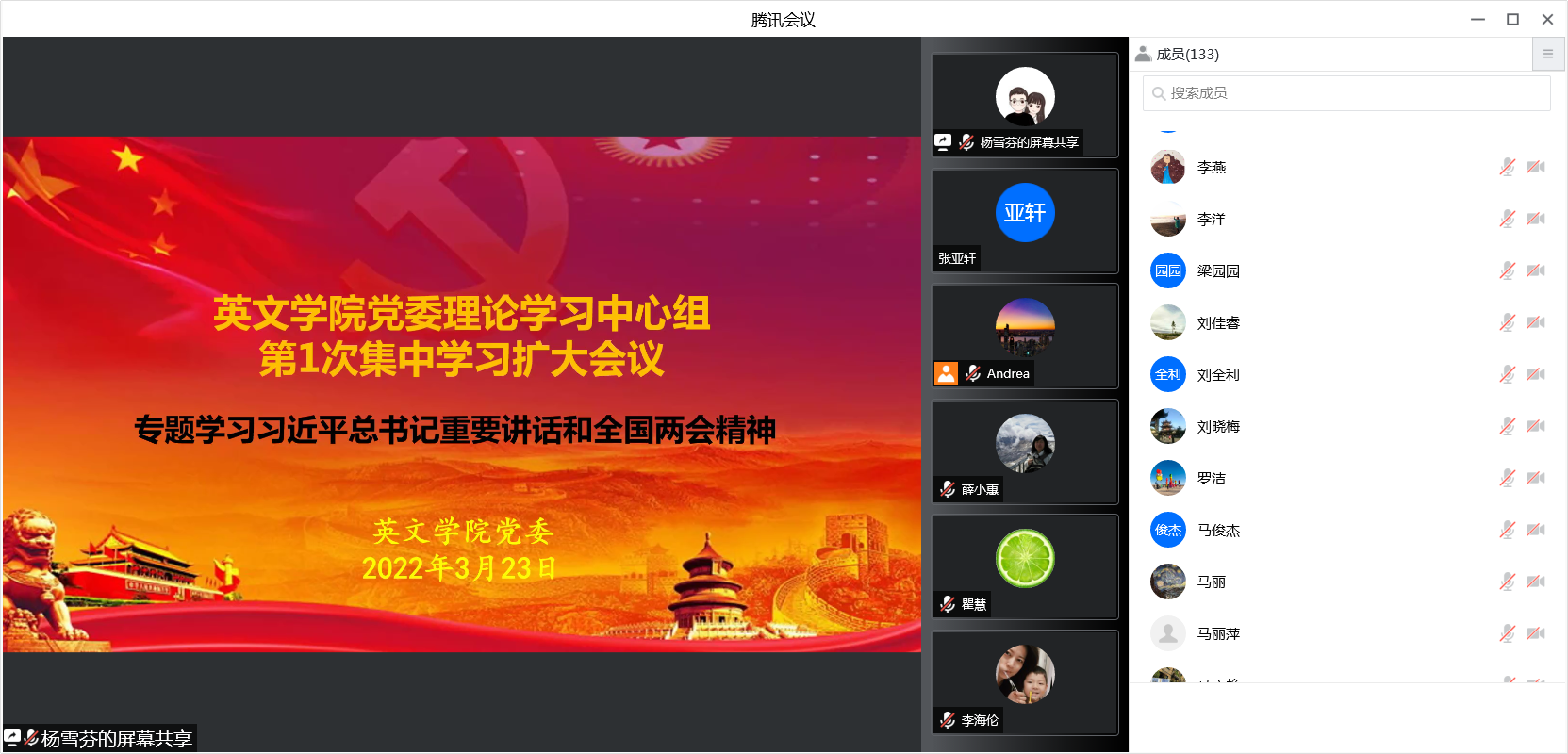 2022年3月23日下午,开云体育 通过线上方式召开党委理论学习中心组第1次集中学习会暨教职工第3次理论学习会,专题学习习近平总书记重要讲话和全国两会精神,中心组成员和全体教职工通过腾讯会议参加,会议由理论学习中心组组长、党委书记单升军主持。