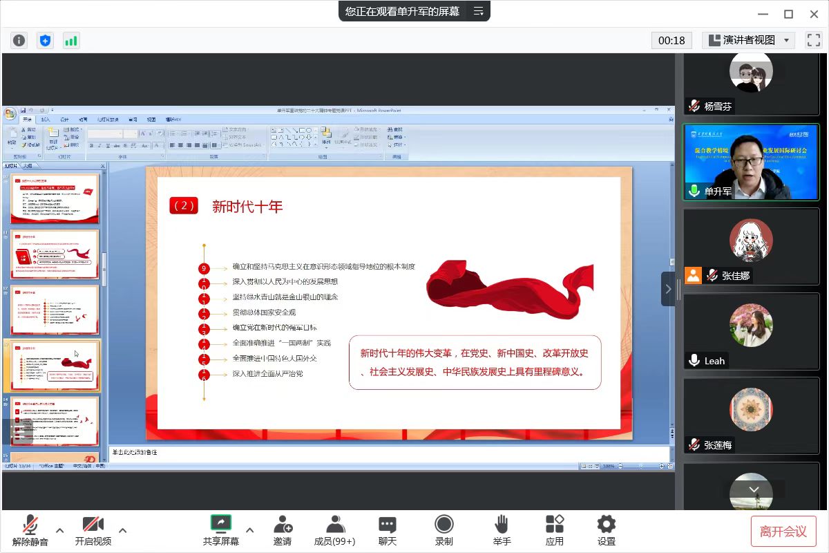 党委书记单升军为全体教师讲授党的二十大精神专题党课。党课采取线上腾讯会议形式进行,全体教职工100余人聆听学习。