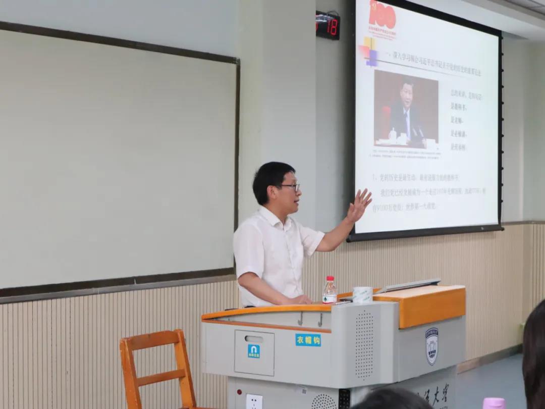党委书记单升军老师主讲。杜老师以《入党的条件及程序》为主题,详细讲述了每一发展阶段的基本程序以及所需材料的撰写要求,并表达了对同学们的殷切期盼,希望同学们增强自身责任心、奉献心、社会意识和发扬担当精神。单老师以《习近平总书记关于党史的重要论述》为主题,他谈到:历史是最好的教科书和营养剂,同学们要坚定理想信念,传承红色基因,练就过硬本领,勇于砥砺奋斗,锤炼高尚品德,早日成为一名合格的中共党员。