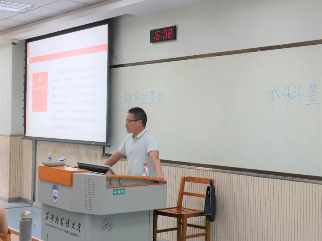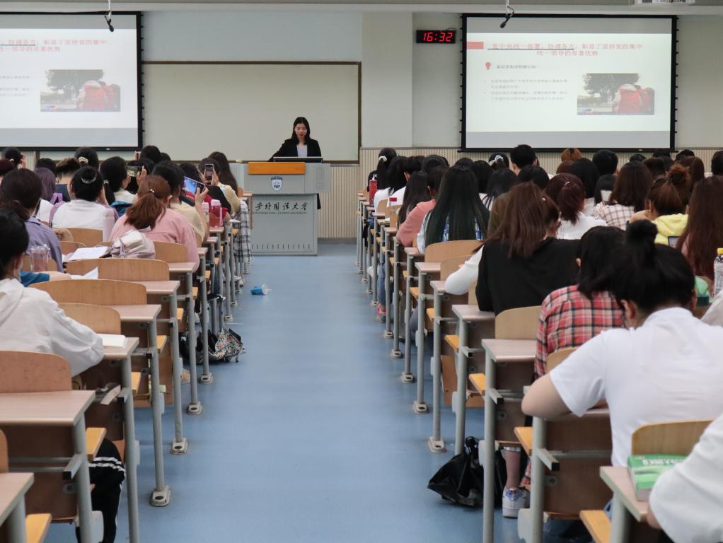 党委副书记马文静老师和党务秘书王子涵老师主讲。马老师以《发扬脱贫攻坚精神·汲取前进力量》为主题,从“脱贫攻坚精神内涵、我们在脱贫攻坚一线的实践、脱贫攻坚精神对我们的启示”三个层面出发,结合自己在白坪村的扶贫经历,向同学们讲述扶贫精神的深刻内涵。王老师以《共产党人的初心与使命》为主题,从“走进共产党人的初心,中国共产党最有理由自信,全面从严治党、开创未来”三个角度进行详细讲解。王老师表示,同学们应明白肩上的重担,不光要发展好个人,更要将个人前程与国家命运相连。