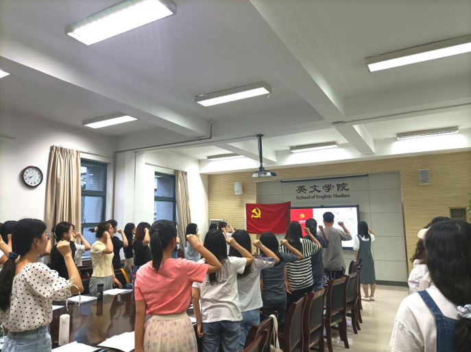 其次,燕文静带领支部全体成员宣誓:我志愿加入中国共产党,拥护党的纲领,遵守党的章程,履行党员义务……全体党员面向党旗,举起有力的右拳,庄严宣誓。大家在嘹亮且坚定的宣誓词中一遍遍的回忆自己的入党初心,一次次的默念不忘初心、牢记使命。