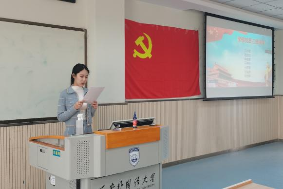会上,李璇首先带领全体与会成员深入学习了党的二十大报告的部分内容,她以“推进文化自信自强”为主题,呼吁青年学子在全面建设社会主义现代化国家的过程中,必须坚持中国特色社会主义文化发展道路,不断学习中华民族传统文化,并结合专业知识用外语讲好中国故事,不断提升国家文化软实力和中华文化影响力。