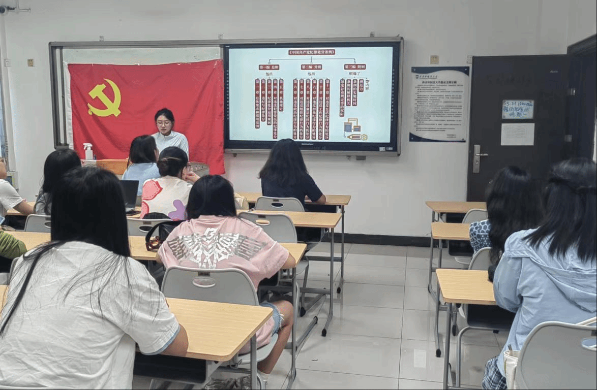 本科生第一党支部于JB304开展“应知应会党纪法规”党纪学习教育主题党日活动。会议由支部副书记曹珈硕同志主持,全体学生党员(含预备党员)参加。