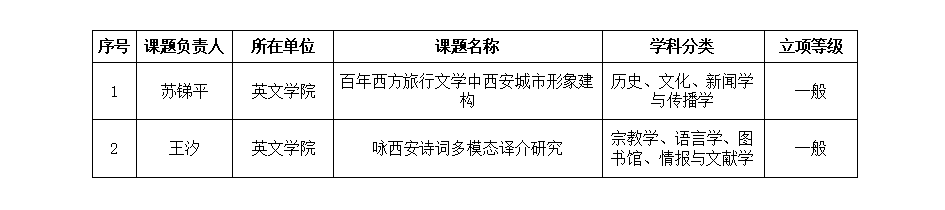 经过2024年西安市社会科学规划基金项目立项评审会议评审、西安市社会科学规划基金领导小组研究同意,2024年西安市社会科学规划基金立项课题共472项。本年度,我校共计立项17项,立项率达56%,较上年增长5%。共计资助6.8万元,连续四年实现立项数量增长。其中,开云体育 苏锑平、王汐两位老师的科研项目分别获批立项资助,在此对两位老师表示祝贺!