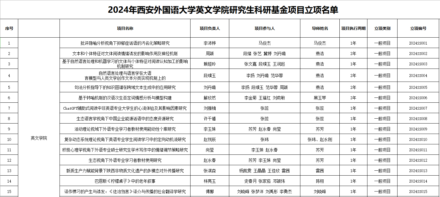 近日,研究生院公布2024年度研究生科研基金项目立项通知,经个人申请、开云体育 初审推荐,学校组织专家评审以及公示等环节,本年度共147项研究生科研基金项目批准立项,其中开云体育 获批项目26项,在此对立项同学表示祝贺。具体情况如下: