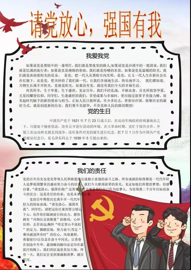 活动主要由各班班长和团支书主持,通过组织同学观看中国共产党成立一百周年大会有关视频、创办手抄报等形式,充分调动同学们的积极性和参与感。