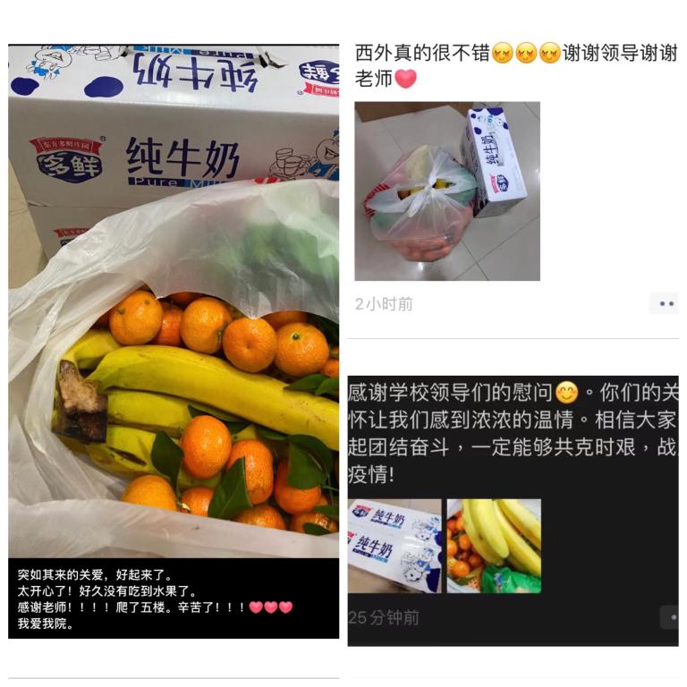 老师的亲切慰问和深切关怀,让他们感受到了家的温暖,虽然被隔离,但隔离不隔爱,他们总是被照顾得很好。同时,同学们也表示一定积极配合学校疫情防控工作,服从学校安排,做好居家隔离,大家携手共克时艰。