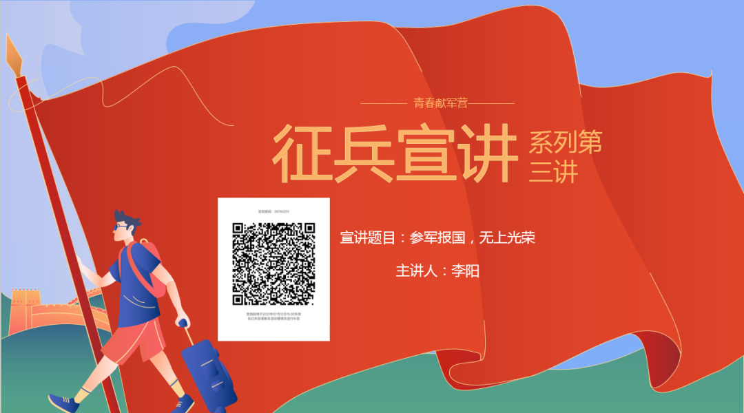 高度重视2021年下半年征兵工作,结合教学育人实际,把征兵宣讲作为学生实践周军事理论教育的一部分落到实处。7月12日,系列征兵宣讲的第三场活动通过线上方式顺利进行,本次宣讲“参军报国,无上光荣”为主题,主讲人是我校征兵宣讲团成员、优秀退伍大学生李阳,开云体育