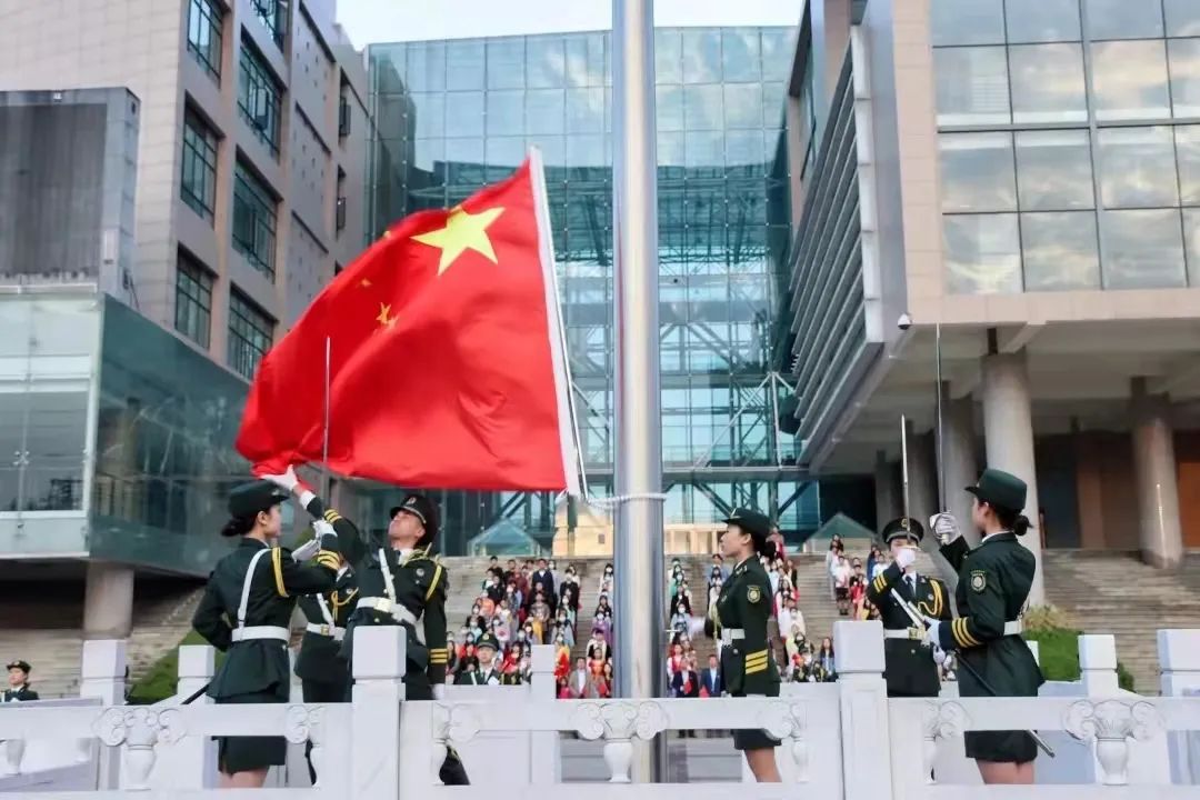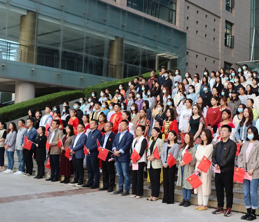 红旗飘飘,盛世礼赞。英文师生通过此次仪式向祖国表达了强烈的家国情怀和爱国意识,更加坚定了勇担使命、砥砺前行的信念与决心。
