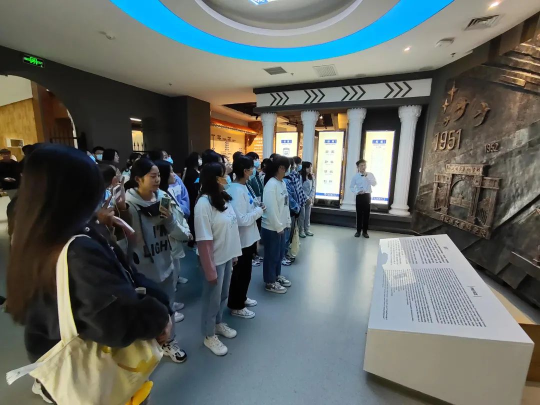 于10月14日组织新生代表100余人分别参观了“红色百年革命文物图片展”和校史馆。