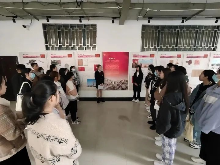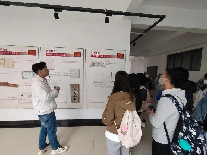 讲解队为同学们讲解,整个展览分为“革命岁月开辟新天地”、“建设年代描绘新画卷”、“改革开放谱写新篇章”、“万众一心奋斗新时代”等 4 个部分,形象、直观地展现中华民族实现从站起来、富起来到强起来的伟大飞跃过程。一张张“红色”的图片,都在诉诸着曾经的历史,诉诸着新中国发展的诸多困难险阻,诉诸着一代代前辈披荆斩棘换来当下的美丽新中国,更让我们明白当今一切的来之不易。