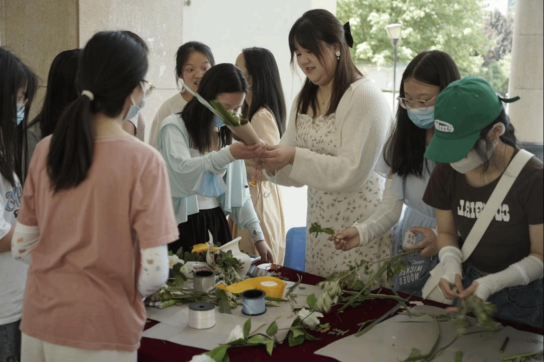 活动现场为大家提供已经编织完成的五彩绳,同学们只需加以装饰即可领走。自制艾草花束处为大家准备了艾草、菖蒲、薄荷、小雏菊等花草以及工具,在场志愿者也为参与的同学提供技术指导。最后,做好的花束将以开云体育