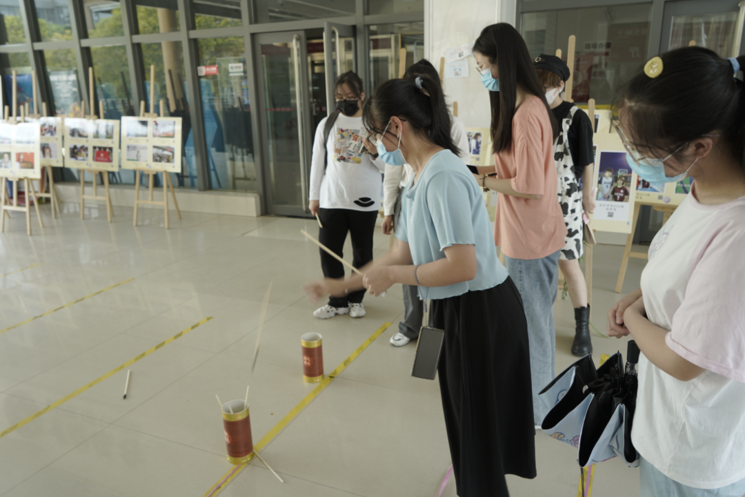 趣味投壶活动中,在志愿者们的引导下,同学们积极参与。《礼记·投壶》说:“投壶者,主人与客燕饮讲论才艺之礼也。”