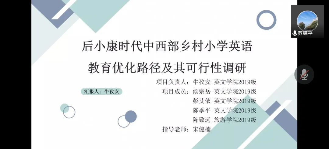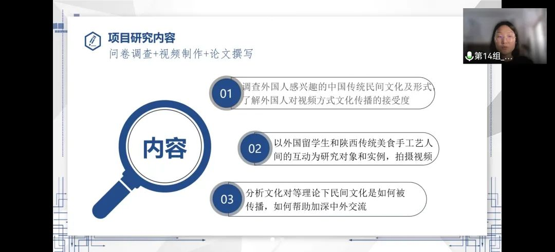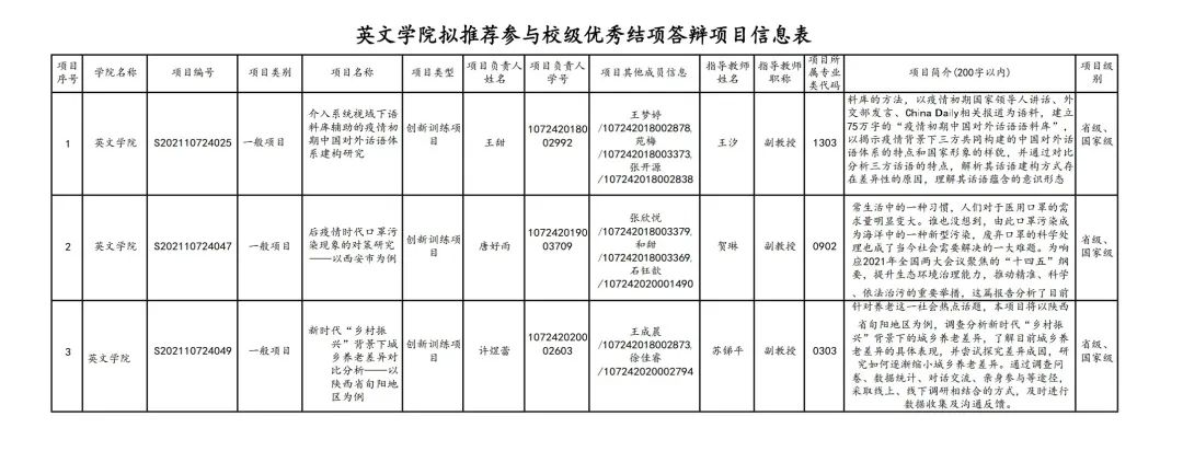 项目工作小组评估及审议,拟推荐3个项目参与校级优秀结项答辩,分别是“介入系统视域下语料库辅助的疫情初期中国对外话语体系建构研究”项目、“后疫情时代口罩污染现象的对策研究——以西安市为例”项目以及“新时代‘乡村振兴’背景下城乡养老差异对比分析—— 以陕西省旬阳地区为例”项目。
