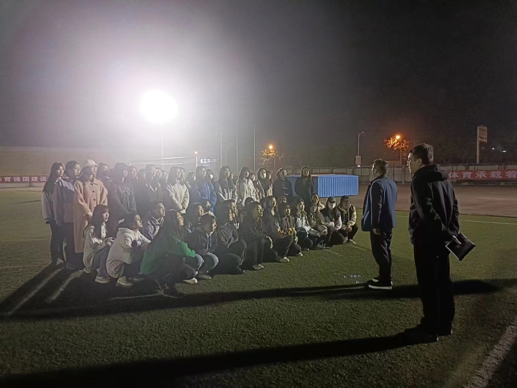运动员向在场老师们展示了训练排练成果,尽管天色已晚,但同学们依旧精神焕发:方阵运动员们步伐整齐、口号响亮;参赛运动员们生龙活虎、青春飞扬,都给在场老师留下了深刻印象。