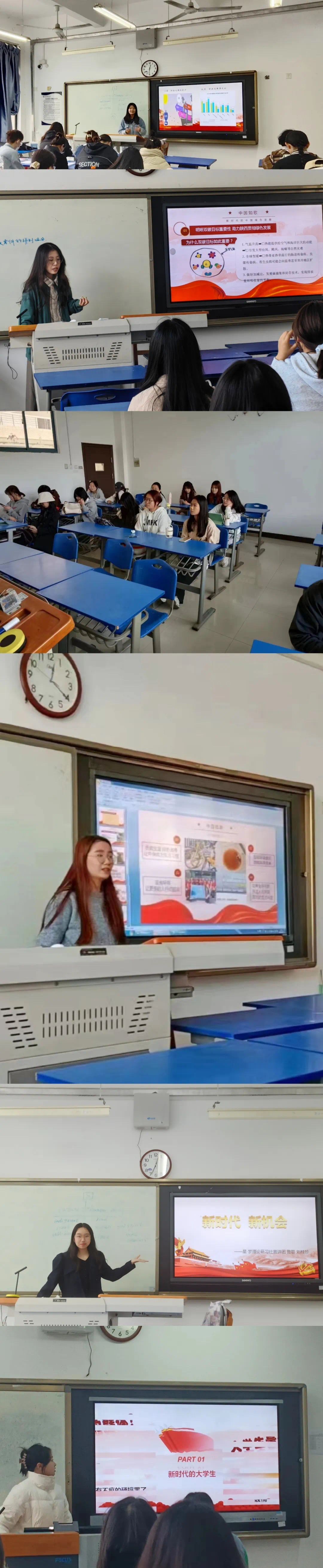 宣讲伊始,宣讲团成员以生动形象的视频和启人心智的问题为导向,结合个人宣讲内容和宣讲方式阐述自己独具特色的宣讲主题,将党的二十大精神活学活用。接下来,宣讲团成员在宣讲过程中,以青年青语的口吻,从自身角度出发,将理论联系实际,讲解党的二十大召开的重要意义。知为行之始,学为用之先,宣讲团成员通过身边的榜样事迹和英雄人物形象,生动形象说明青年大学生坚定理想信念,练就过硬本领,胸怀伟大祖国,用自己的智慧谱写灿烂青春。