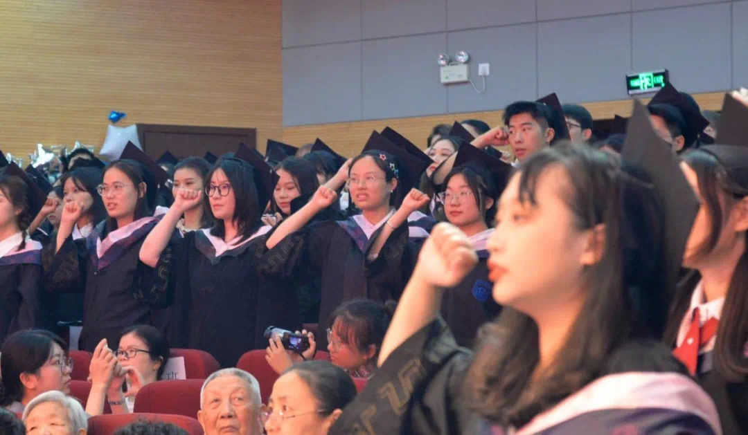 随后,学生代表李程、丁泽杨上台领誓,毕业生集体庄严宣誓,纷纷表示将牢记誓言、永葆初心。