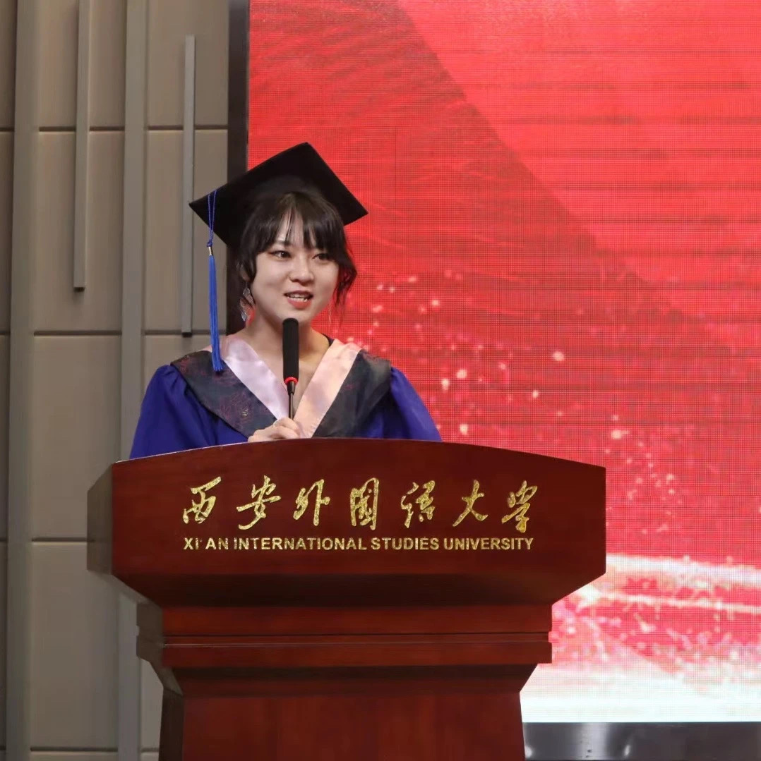 优秀毕业生代表王玟珺和优秀毕业生干部代表张星钰依次进行发言。作为2023届毕业生,她们都满怀感慨地回忆了难忘的校园生活,分享了在西外生活学习的“酸甜苦辣”。同时,号召同学们常怀感恩之心,感恩父母、感恩老师、感恩母校朋友、感谢家人。两位同学还号召全体毕业生勇担责任,在跨文化交流中讲好中国故事,并表达了对母校美好的祝愿。