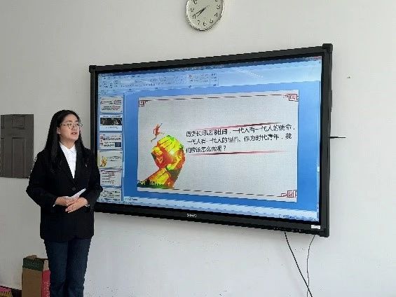 2022级5班团支书兼“星·梦”理论研习社成员李敬谦同学以《挺膺担当:中国青年答时代问》为题,展现了波 澜壮阔 的历 史 进程中一代代中国青年的群像,他们以挺膺担当的青春模样回答时代之问。同时,号召广大青年团员青年握好历史的“接力棒”,以青春之姿挺膺担当。