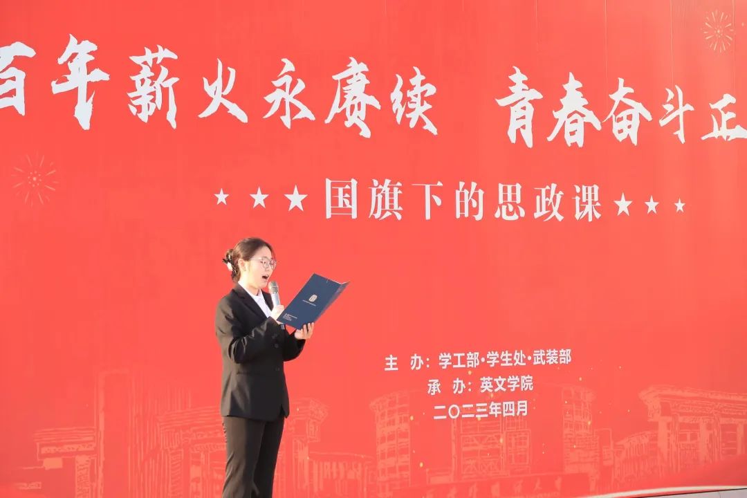 升旗仪式最后,在全体师生《我和我的祖国》的歌声中,开云体育 学生代表进行了名为《青春中国》的朗诵,并带领全体学生宣誓,心念国家民族,志在少年自强。