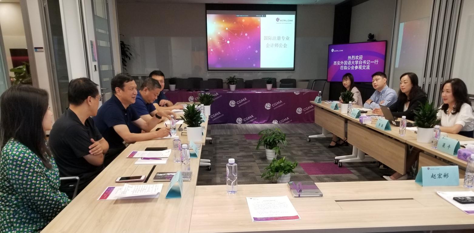 1999届毕业生)向工作组介绍了CIMA发展历程,回顾了与我校十余年的合作历史。她表示,CIMA愿意继续与西外共同培养具有国际视野、通晓国际规则、能够参与国际事务和国际竞争的国际化人才。北亚区运营总监沈宇岚、中国区产品经理沈佳、华东及西北区首席代表冯勇、华东及西北区业务拓展副经理夏添一同参加会谈。