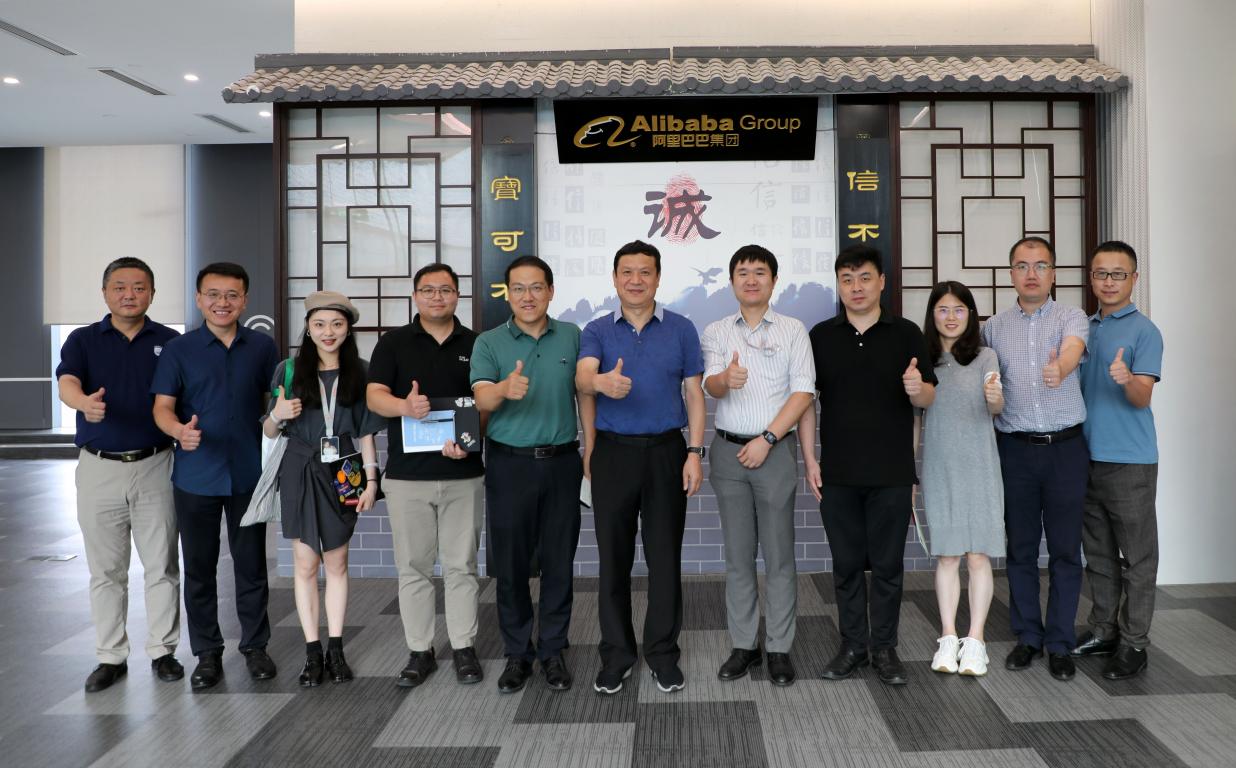 在阿里巴巴集团总部,白黎书记一行来到“双十一”活动指挥部,听取事业部负责人对集团主体业务、新兴业务的介绍,饶有兴趣地与工作人员探讨阿里云计算和数字经济发展趋势。在会谈时,阿里巴巴集团战略发展部总监杨晓表示,跨境电商人才需要熟悉语言文化、政治经济、法律制度,应具备涉外沟通能力以及创新能力,“一带一路”沿线国家大多为新兴市场国家,对外贸易持续向好,依靠外语人才支撑。天猫校园战略发展公共事务总监沈昱、淘宝教育区域负责人曾文化、阿里巴巴集团校企合作经理赵竹竹、菜鸟校园区域运营总监穆亮睿一同参加会谈。