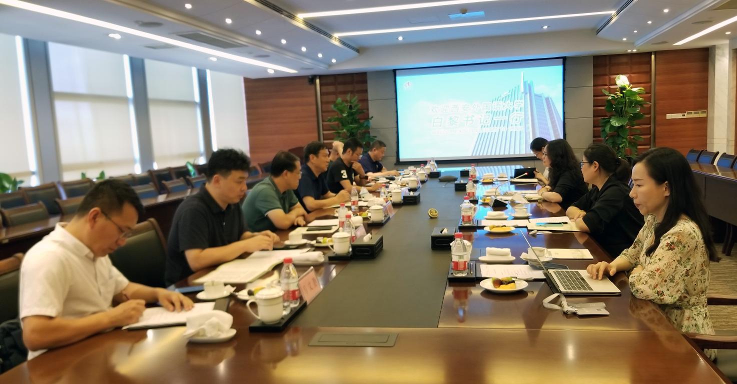 在走访时,工作组成员还前往上海软科教育信息咨询有限公司,会见总经理程莹和高校事业部负责人陈慧,关于语言类高校高质量发展情况以及学校专业建设进行了交流,了解软科大学评价指标体系和相关模型。