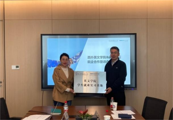 查找在学科专业设置、人才培养、就业服务等方面存在的不足,从而进一步提高英文学院人才培养质量等。双方举行了学生就业实习基地授牌仪式。座谈会后,学院访企拓岗工作组一行参观了企业园区和办公环境。