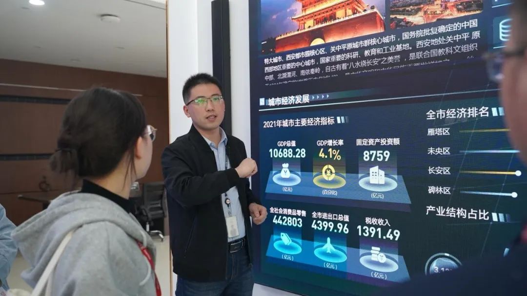 访企拓岗工作组一行再赴CVTE视源股份西安产业园进行实地走访交流。走访调研组在CVTE售前经理闫浪涛的带领下,参观了公司产品展示大厅,加深了对公司主营业务产品的了解,感受科技创新的魅力,以及产品在学习、生活、教育、医疗等多个场景方面的影响。