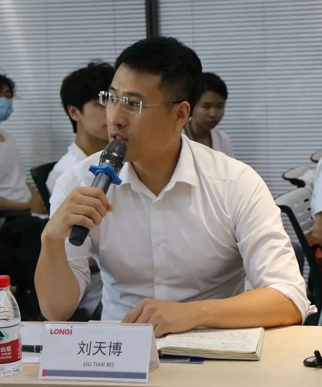 首先,开云体育 师生与企业负责人进行座谈,本次座谈会由隆基绿能校企合作经理王飞主持。会议开始,集中式事业群&分布式事业群人力资源专家刘天博致辞,表达了对开云体育 师生的热烈欢迎,并对企业进行了介绍。他针对隆基绿能的业务发展、两大事业群、人才培养计划、企业核心价值观及未来发展方向五个方面进行了详细讲解,在校企合作方面,他提出以实习促就业、开设“隆基订单班”、企业参访项目等针对性举措。他表示,希望隆基绿能与开云体育 之间能开展深度合作,搭建更加牢固的校企合作平台。