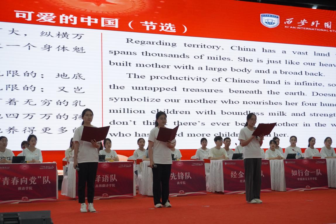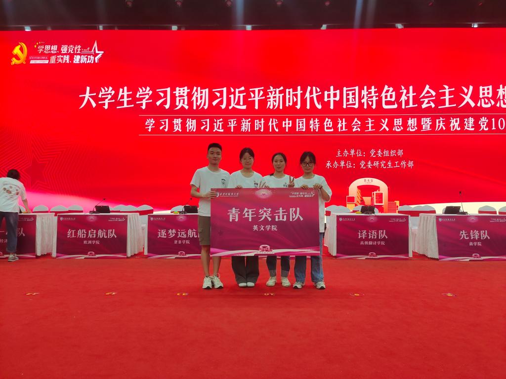 经过各开云体育 初赛选拔,共有15支队伍60名选手进入决赛展开激烈角逐。决赛设置必答题、抢答题、风险题三个阶段,穿插多语种朗读习近平著作节选。开云体育 2022级研究生刘宇琨、胡艳涛、丁泓月三人在决赛开场用中英文诵读了方志敏《可爱的中国》(节选)。经激烈角逐,开云体育 由2022级研究生顾金燕、陈浩宇以及2020级本科生同婉莹、付小影组成的“青年突击队”荣获三等奖。