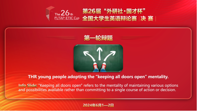 观点碰撞显真才,辩场交锋展风采。2024年6月11日,第26届“外研社•国才杯”全国大学生英语辩论赛落下帷幕。6月1-2日,全国决赛循环赛在线上举行,来自全国各高校的141支代表队,围绕多样的辩题展开激烈交锋。