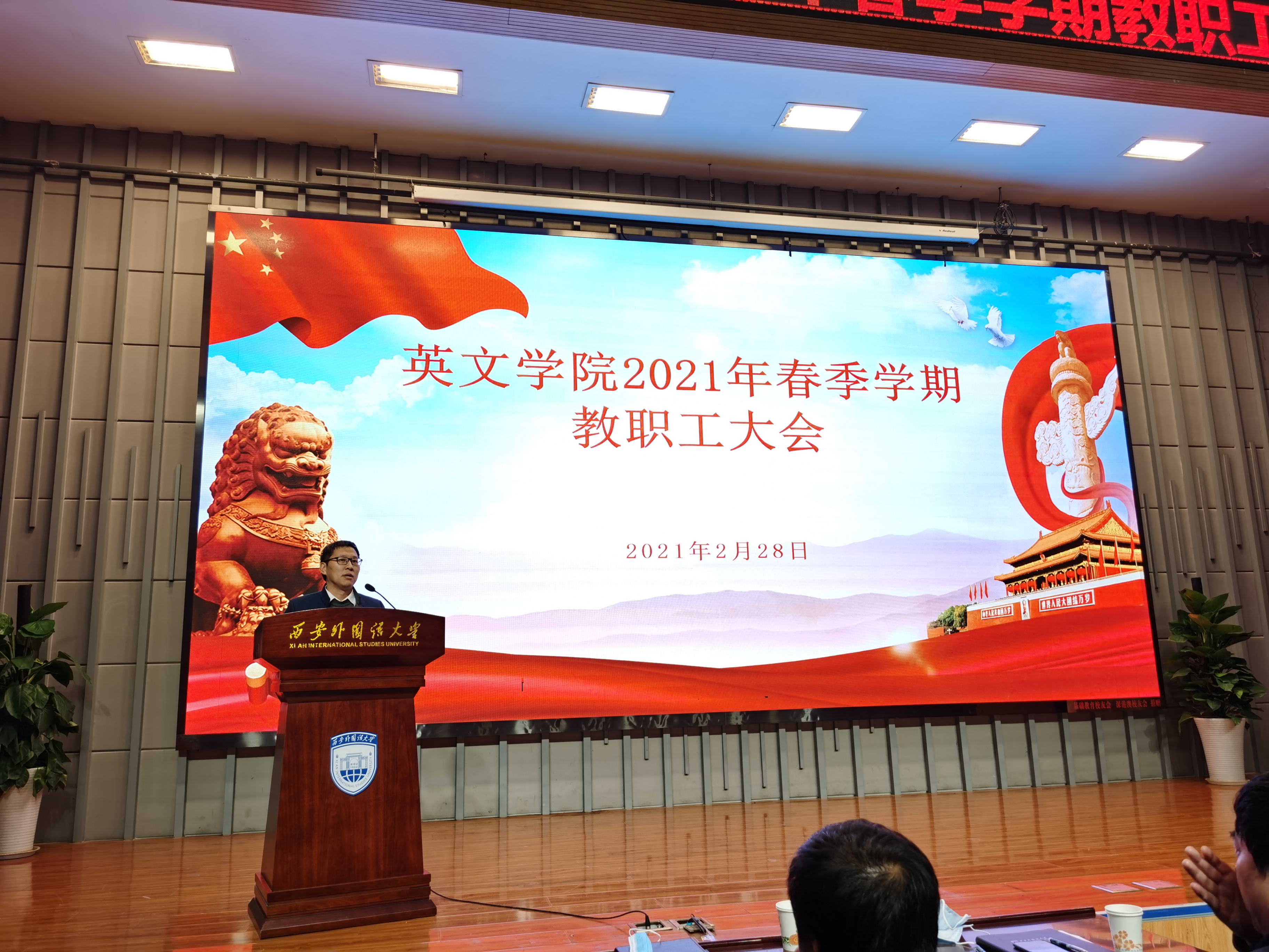在长安校区教学楼A111会议室召开2021年春季学期第一次教职工大会。会议由党委书记单升军主持,140余名教职工参加会议。