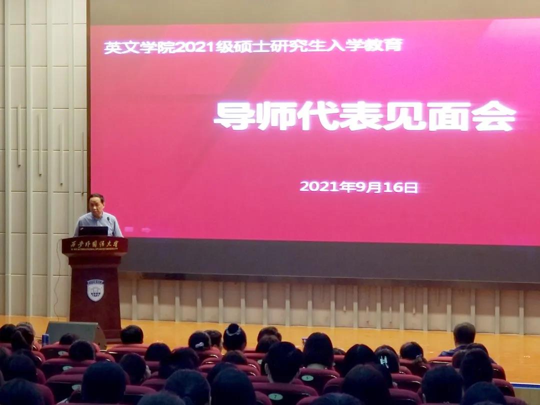 英语语言文学专业导师代表张生庭教授以《论语》求学与立身格言为例,引导研究生从基础学习向专业学习、专业研究转向。外国语言学及应用语言学专业导师代表王改燕教授讲解了师资团队组成及专业特点,引导研究生以科学的目的、精神和方法开展研究。翻译学专业导师代表石春让教授给出三点建议:勤于思考、善于发现;勇于攀登、敢于攻坚;精心探索、巧妙求真。研究生要找到研究的有趣之处,要具备坚定的意志,探索研究对象的本质特征及内在规律,减少重复开展低水平研究,使科学研究进入正轨。国别与区域研究方向导师代表苏锑平副教授讲解了国别与区域研究及跨文化交际方向研究现状,分享了政府依托高校智库开展研究的案例。