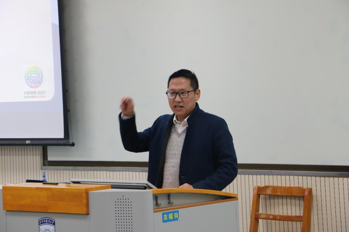 随后,学生代表标兵一组队长李悦、标兵十一组副队长张逸敏、广播电视中心进行志愿服务的张海龙、双先志愿者祁叶通过精美的PPT及富有感染力的语言与同学们分享了自己的心得。李悦同学说“从暮春到初冬,从谷雨到大雪,相比于参加十四运会之前,现在的自己宛若新生。”十四运会让大家有所收获、有所成长。能够参与到这场“家门口的盛会”,大家深感荣幸。张逸敏同学分享了自己在训练期间拍摄的一些照片,并讲述了照片背后的故事。一张张照片,一个个故事,串连起一个完整的“十四运”,将大家的记忆带回到那段辛苦又美好的时光。张海龙同学分享了他与十四运的故事,“凌晨两点,为了不打扰解说老师休息,我们的志愿者同学把厚厚一沓的资料一页一页的塞进酒店门缝。” 纵然工作艰苦,但同学们仍然认真负责,为十四运志愿活动交上了一份满意的答卷。祁叶同学讲述从前期辛苦繁琐的准备工作,到正式上岗,她们没有固定的工作岗位,每个人都身兼数职。虽然十四运会已经落幕,但是小秦宝们“奉献友爱,互助进步”的精神永远留在我们心中。