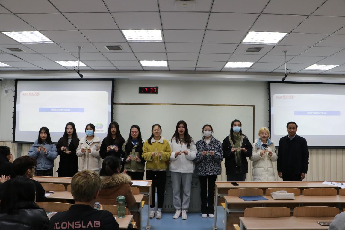 标兵一组、标兵十一组及志愿者学生代表颁发了原创设计的定制纪念品书签,同学们收到定制纪念品倍感兴奋和高兴。