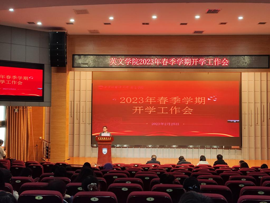 科研任务指标完成情况和2023年指标下达情况。副院长裴等华就大英学生期末考试、阅卷、归档,新学期大学英语课程安排、教学改革等工作做了要求。副院长雷茜就开学考试安排、第二周开课、专四专八培训、本科生毕业论文指导及答辩、本科教学审核评估准备等重点工作做了部署。党委副书记马文静围绕2023年学生工作和工会工作的主要思路和重点任务做了阐释,将重点抓好学生理想信念教育、心理健康教育、就业创业、专业能力提升等工作。副院长徐斌对2022年国际交流工作做了回顾并对新一年的工作进行了展望。