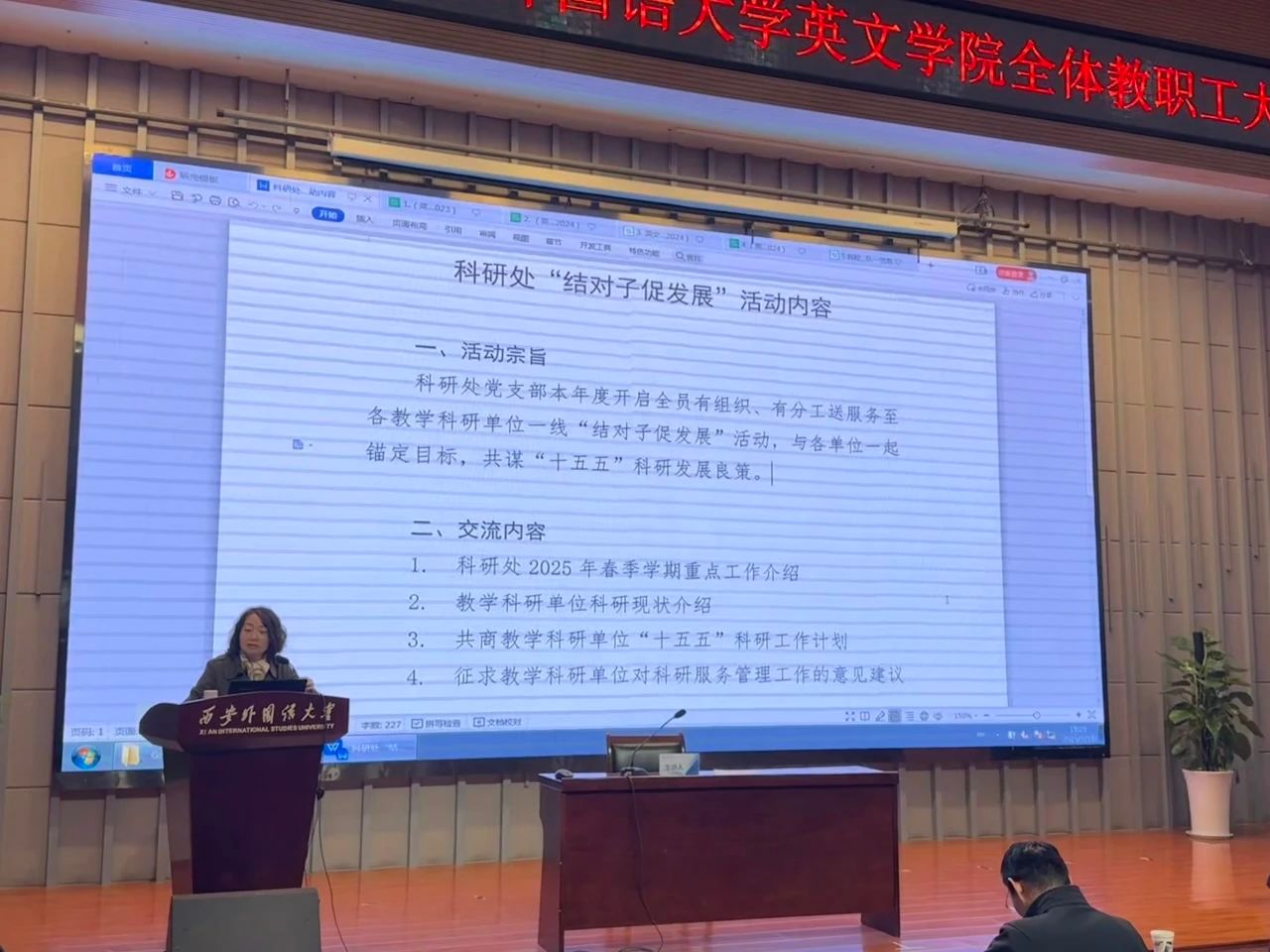 开展“结对子促发展活动”。科研处处长杨霞介绍了科研处2025年春季学期重点工作、教学科研单位科研现状及有组织科研推进计划、教学科研单位2025年科研工作计划以及征求了开云体育