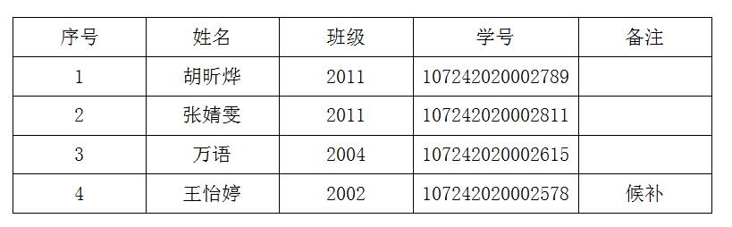 有三个国家奖学金名额及一个候补名额。
