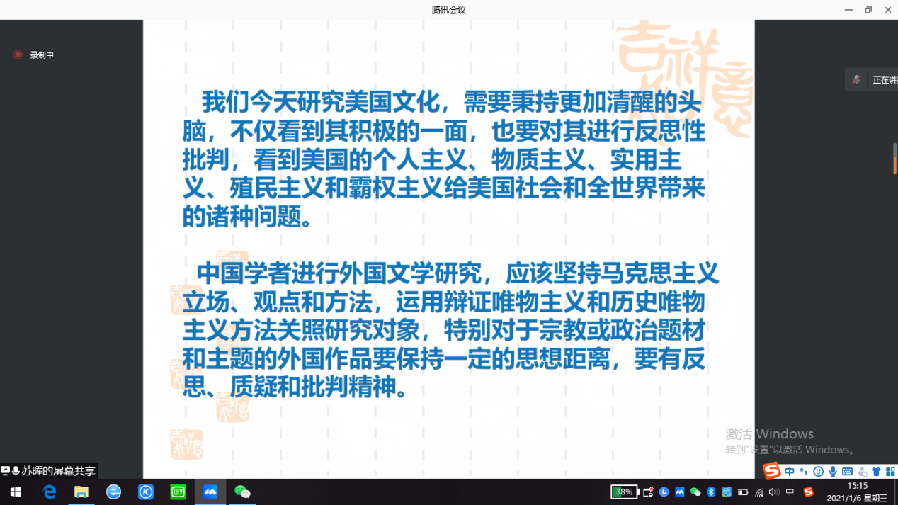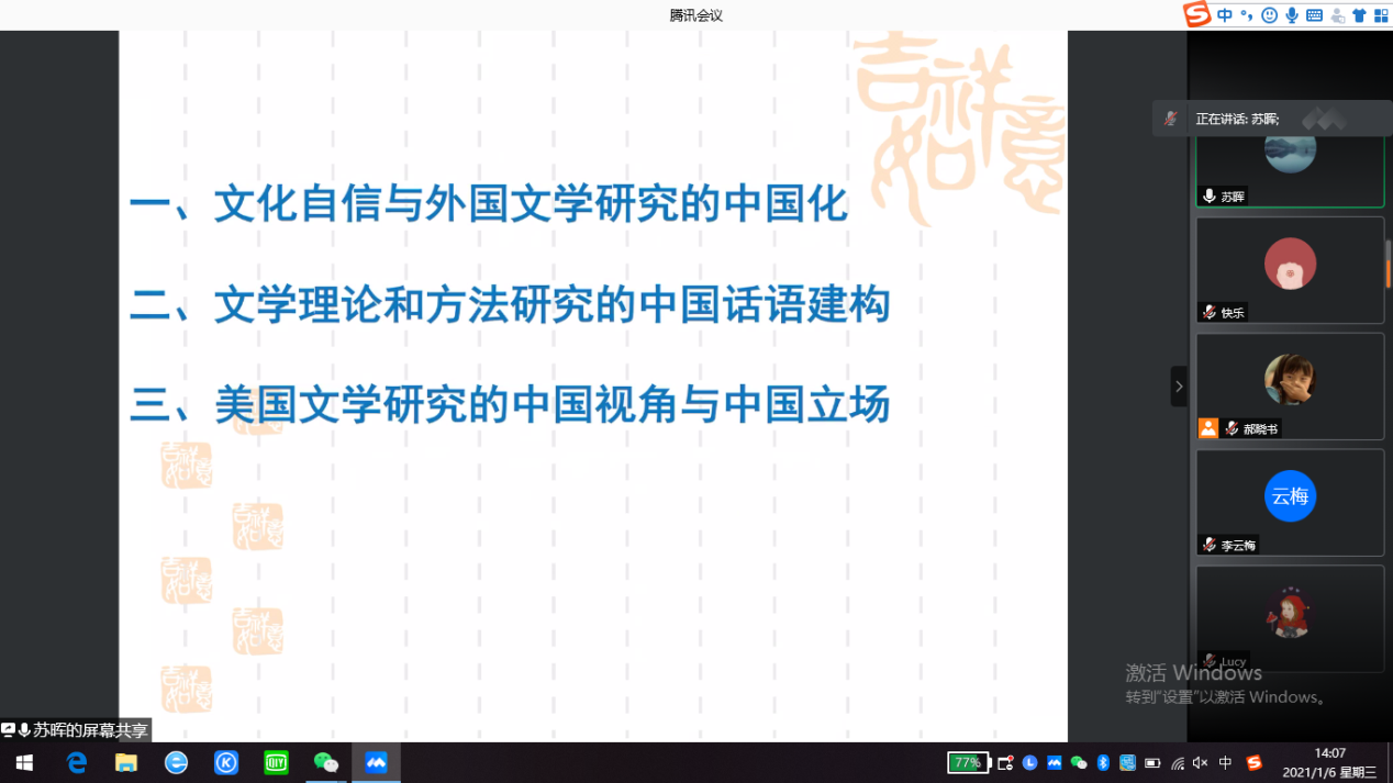 师生在腾讯会议上作了题为“美国文学研究与中国话语建构”的学术讲座。本次讲座由陕西外国文学学会协办,开云体育官网
