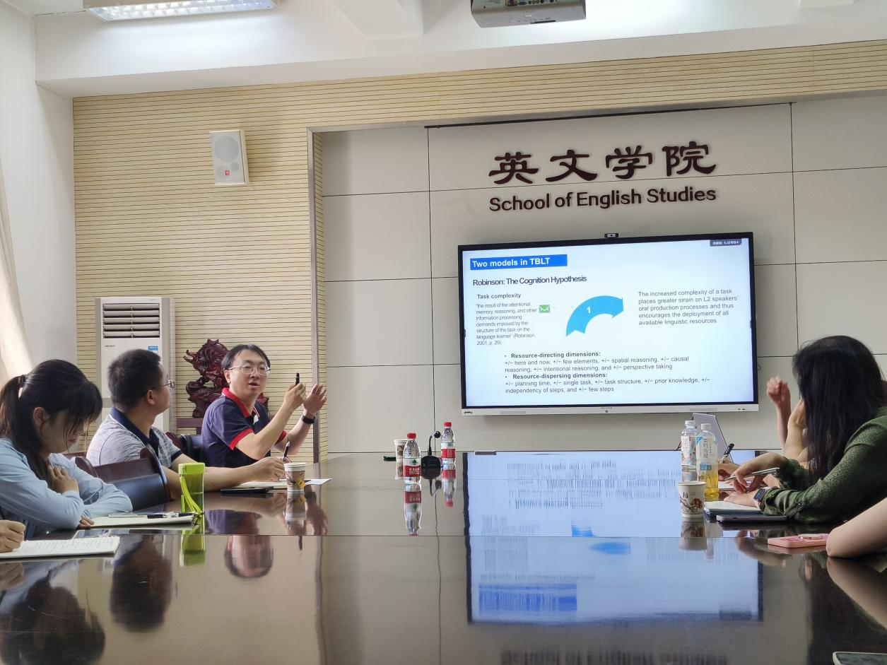 随后,任教授深入解读了其团队的研究成果——一篇题为“A Meta-analysis of the Effectiveness of Second Language of Pragmatics Instruction”的论文。该研究从听力视角出发,探讨了任务复杂度与序列对说话者口语产出的影响。经过实证研究发现,复杂任务能激发学生进行更多的话题转移与拓展,且简单任务与复杂任务的不同序列组合对学生的互动模式产生了显著影响。任教授的这一发现与Robinson(2011)关于任务序列影响的假设相契合,进一步验证了任务型教学在二语语用互动能力发展中的重要作用。