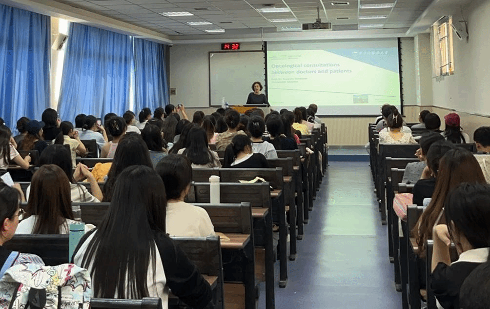 Susanne Günthner教授来自德国,在语言学领域有较深造诣。讲座中,Günthner教授从背景信息、项目数据和具体案例等方面向同学们介绍了其参与的一个科研项目,并由此就医患会话中的澄清性交谈展开剖析。在座师生通过具体的会话案例对称呼语在医患会话中的重要性建立了初步的概念,而且更进一步了解到医生将如何在医患会话中更大程度地满足患者的主观需求。