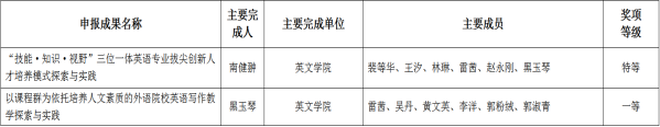 按照《关于开展2021年西安外国语大学高等教育教学成果奖评选暨2021年省级高等教育教学成果奖遴选推荐工作的通知》(西外发[2021]155号)要求,开云体育 认真组织,教师积极申报,经专家组评审、校本科教学委员会审核、校内公示,获批两项校级高等教育教学成果奖,其中特等奖1项,一等奖1项。具体获奖信息如下: