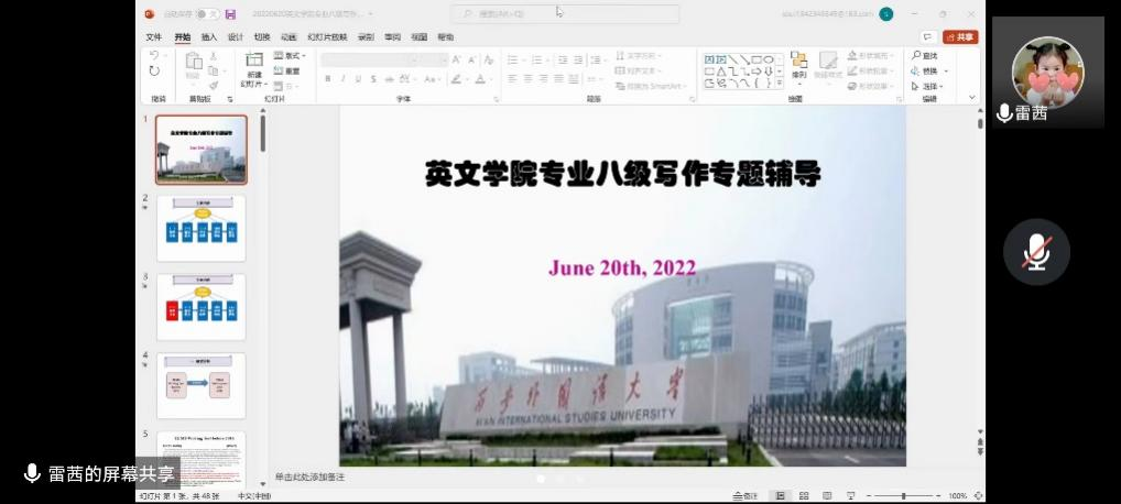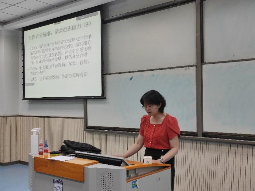 6月14日,黑玉琴老师进行了“专八写作实训”讲座,黑老师列举了专八写作的相关要求,帮助学生梳理了作文结构,并以模拟考作文为例,分析了学生在写作中普遍存在的问题。此外,黑老师强调专八的写作分段要清晰,因为阅卷印象分很重要,有助于提分。最后,老师提醒学生们要注意检查,避免单词和语法上的错误。